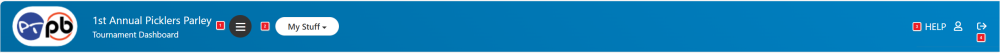 Once a tournament is created, you can access all of the management functions through the options located on the tournament header.