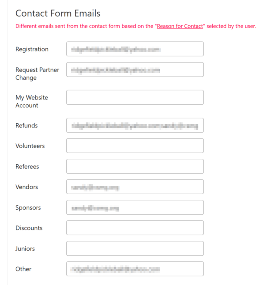 PickleballTournaments.com generates emails from players who use the Contact Tourney link on the website. Depending on their reason for initiating the contact, you may have the inquiries directed to different email addresses.