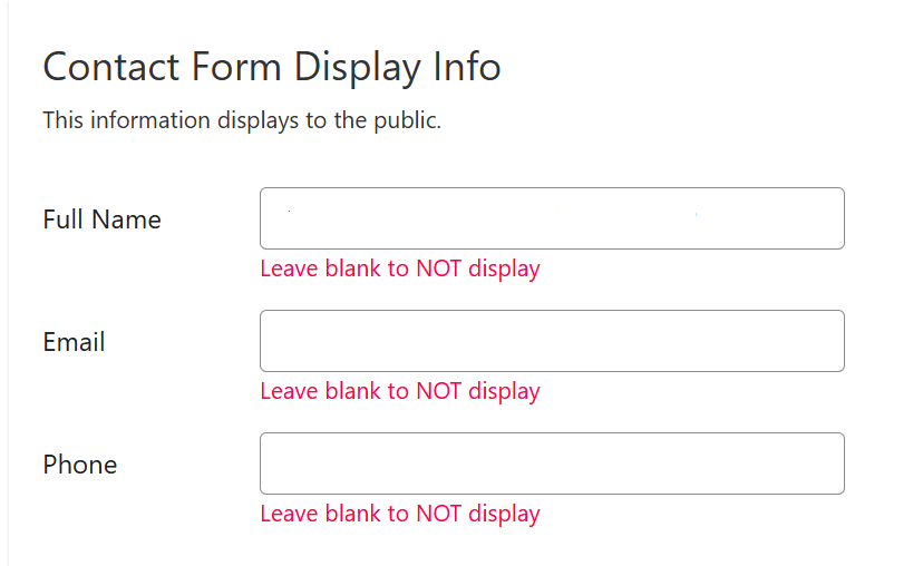 Contact Form Display Info – Fill in this section only if you wish to have the Tournament Director’s contact information displayed on the screen when the Contact Tourney link is selected.