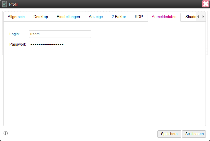 Soll die Anmeldung an der Remote-Sitzung mit vordefinierten Anmelde-Daten erfolgen, so können diese hier definiert werden.