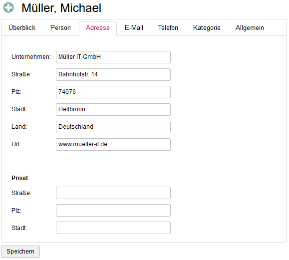 Im Adress-Bereich können Adress-Daten verwaltet werden: