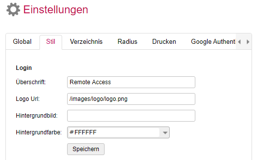 Hier kann das Aussehen der Benutzer-Login-Seite definiert werden.
