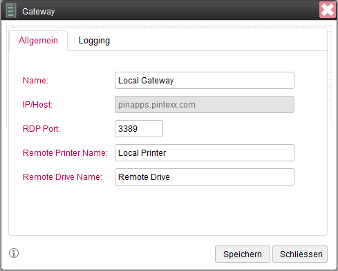 Der Name des Laufwerks, welches in der Remote-Sitzung erscheint, kann hier gesetzt werden.