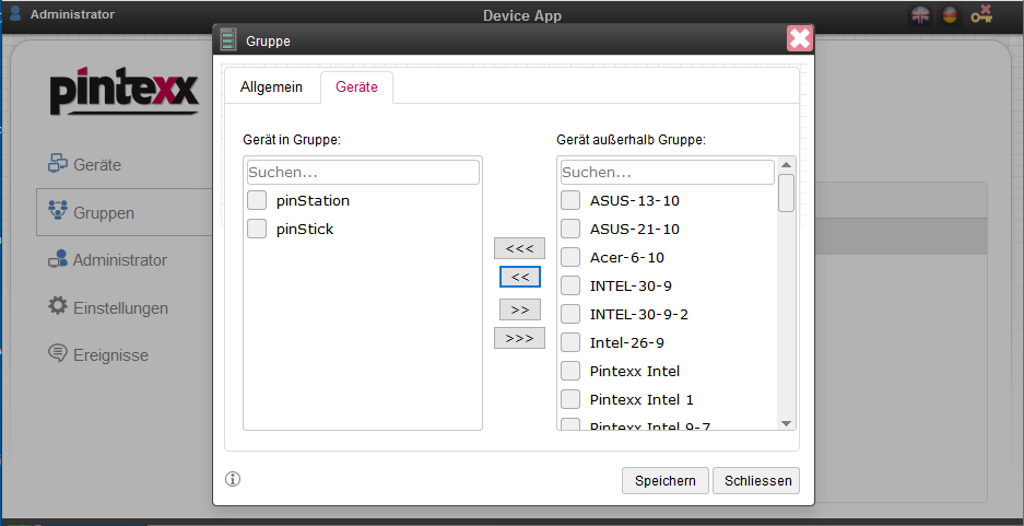 Hier können Geräte zur Gruppe hinzugefügt oder entfernt werden.