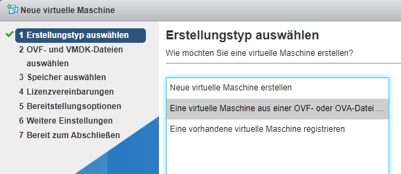 Als Erstellungstyp “Eine virtuelle Maschine aus einer OVF…” auswählen