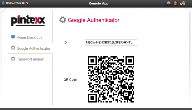 If a profile with 2-factor authentication has been activated via Google Authenticator, the “Google Authenticator” menu menu will be displayed with a QR code.