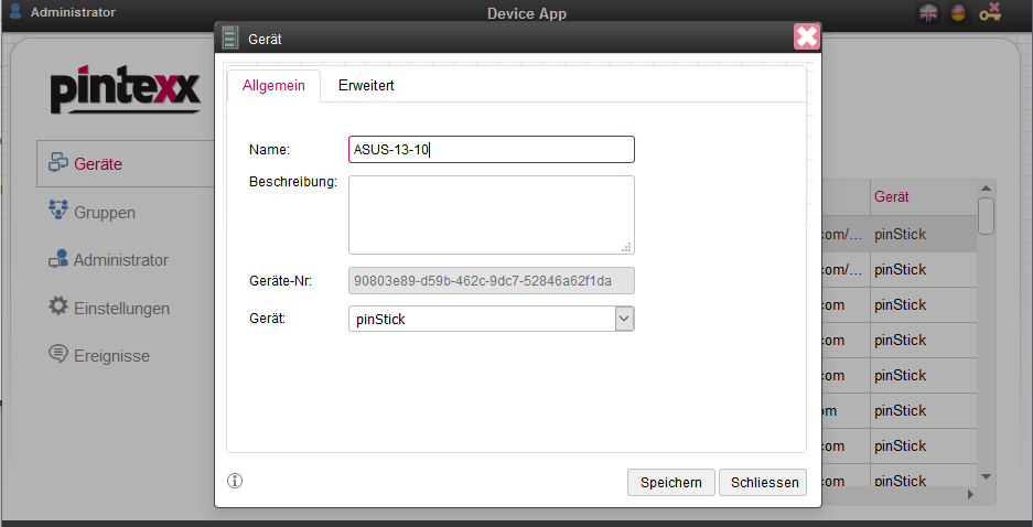 | Application url | The full url of the web application that is called up in the device (usually the “Cockpit” |