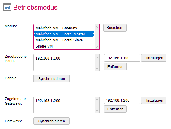 The current configuration is transferred to all portal VMs via the “Synchronize” button.