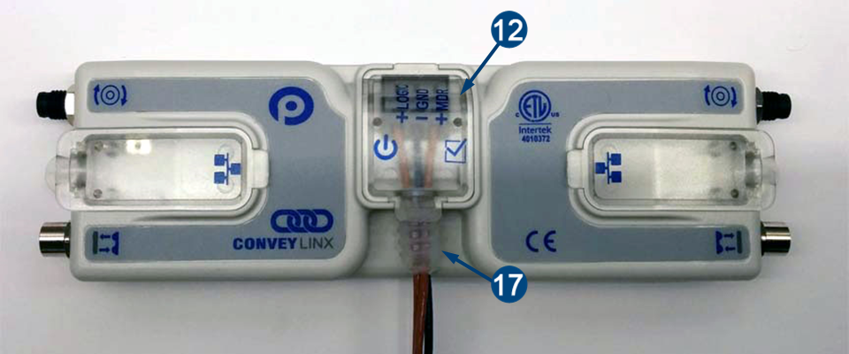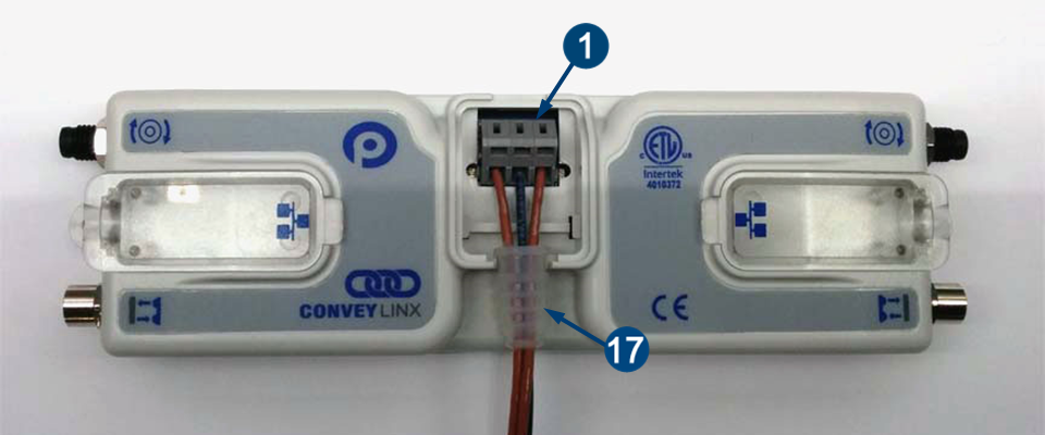 | Power wires are fed through the protective shroud (Item 17). The wire terminals (Item 1) are standard cage-clamp style |