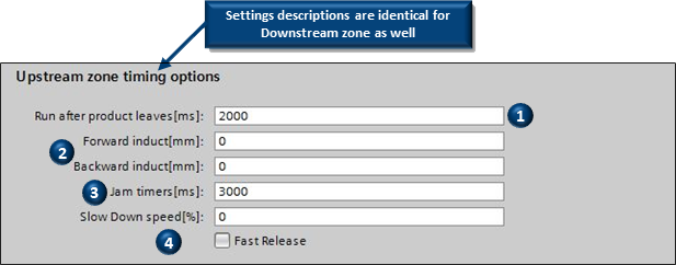 *These settings are identical for the Downstream Zone