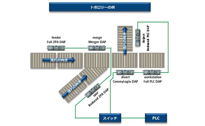 コンベヤレイアウトの例は、統合型トポロジー構成法を図で解説するのに最適です。