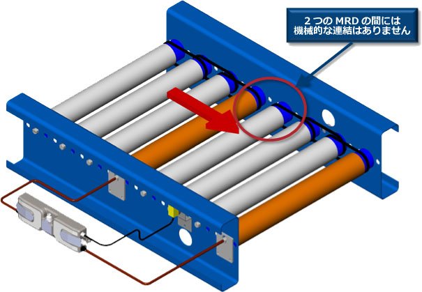 この構成では、図に示すように、2つのモーターローラーは機械的に連結されていません。
