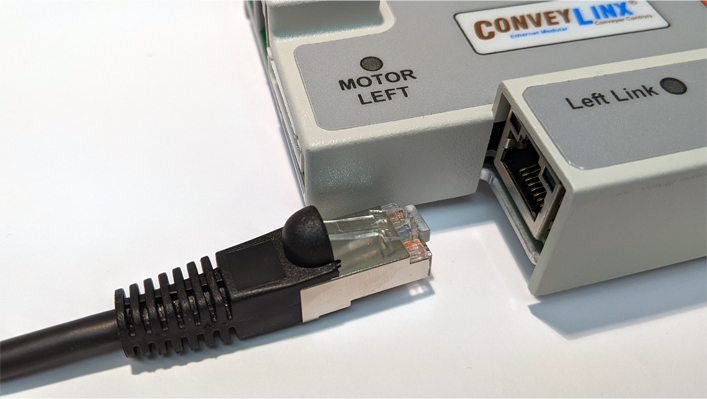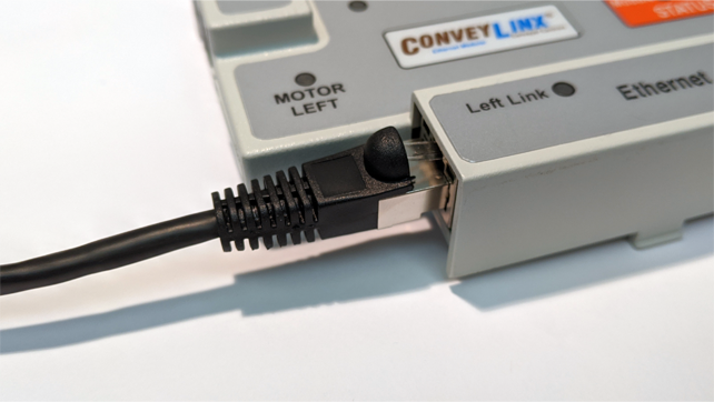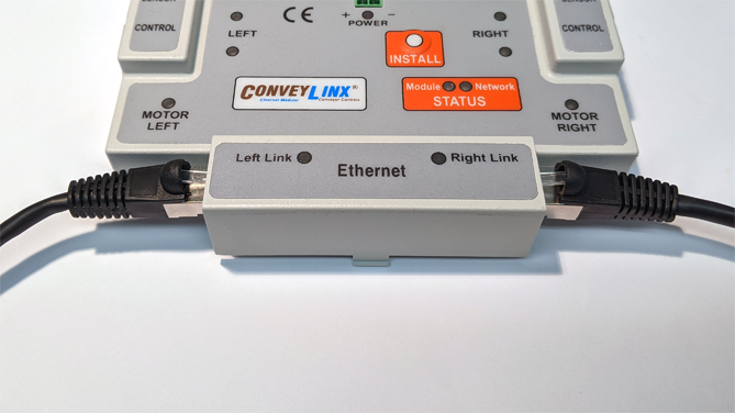 Both Left & Right RJ-45 Cables Plugged In!All Hardware Revision 1 ConveyLinx-ERSC Module must use Ethernet shielded crossover style cables. Hardware Revision 2 and later modules can use straight or crossover shielded Ethernet cables. Failure to use SHIELDED cables may result in data loss and unexpected results