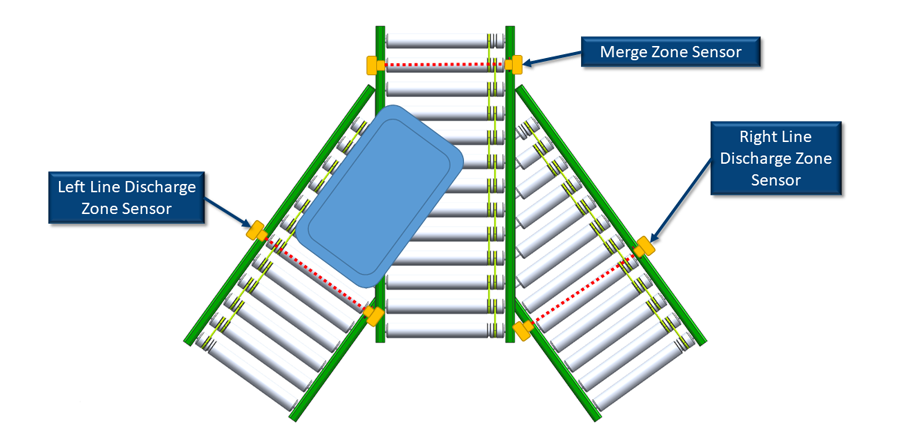 !It is very important for the internal ConveyMerge logic, that the product is seen by only one sensor at a time