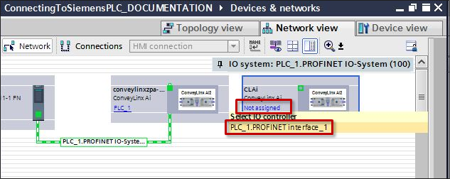 | To attach the module to the PLC, click on the Not Assigned link and select the desired Profinet Interface of the PLC | |
