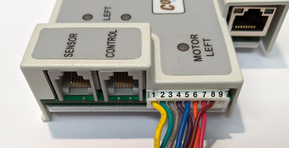 Both the Left and the Right Motor Ports utilize a 9-pin JST brand female receptacle. Each receptacle is mechanically keyed to assure proper orientation upon plugging in. The motor connector pin-outs are as shown
