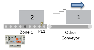 Suppose you want to control the release of multiple items by toggling the Pin 3 signal. After you release the first one, you will get an Arrival Jam because the module is looking for the Pin 4 signal to be energized in order to “confirm the downstream arrival” of the item. So, by using Pin 3 in this case, you will have to wait the Jam Time plus the Auto Clear Time between release of each item.Downstream Control Port Pin 3 is ON and Carton 1 accumulates when it arrives When Pin 3 is turned OFF, Zone 1 will run to convey Carton 1 on downstream When Carton 1 clears PE1, Pin 3 signal is turned back ON. Because Pin 3 is ON, Carton 2 will stop upon arrival at PE1 however because there is no signal to Pin 4 to indicate arrival downstream, Zone 1 will generate an Arrival Jam !!!