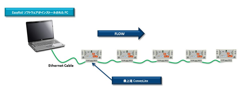 モジュールの両端にある標準のRJ-45イーサネットケーブルを使用して、PCを ConveyLinxネットワークに接続できます。