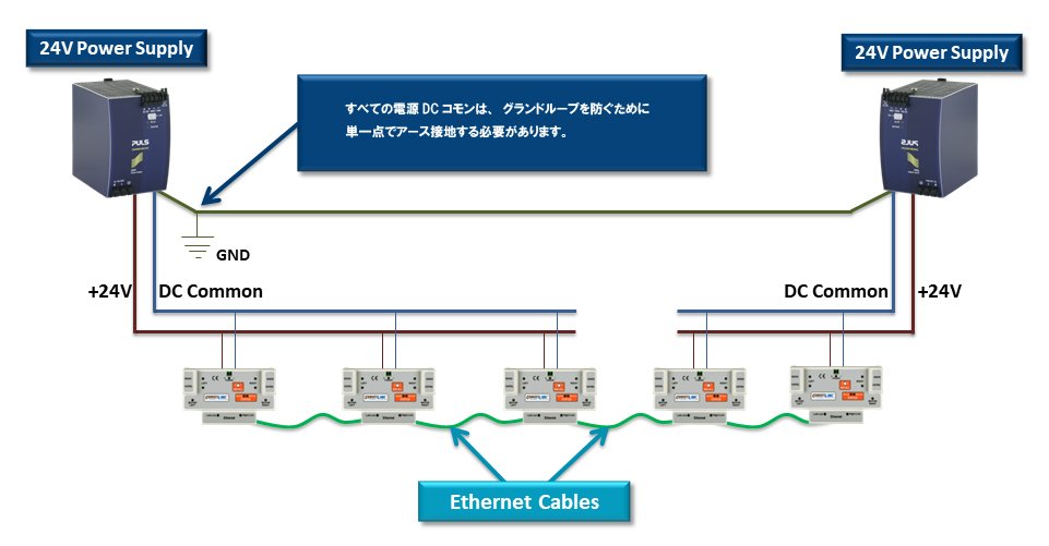 全ての電源装置の「DCコモンまたはマイナスコモン」は、常に接地接続されるべきであり、電源装置のサイズと接地方法が不適切な場合、予期せぬ結果をもたらすことになります。