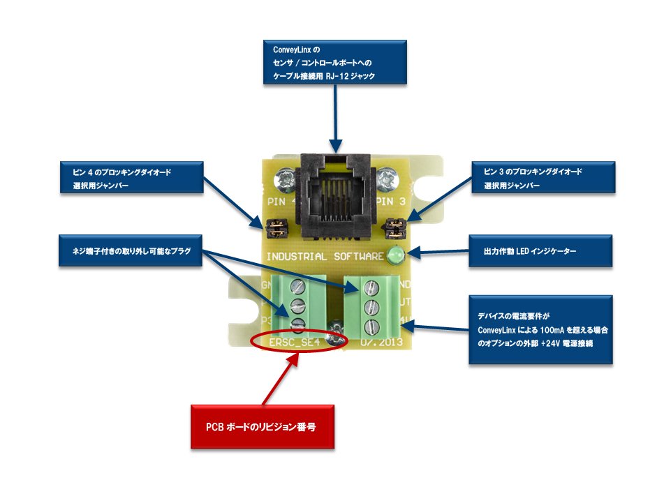 SEモジュールの出力はこの外部電源で最大500 mAまで対応可能です。また、SEモジュールには接続された外部電源が ConveyLinx の電源バスに逆流するのを防ぐ回路が内蔵されています。
