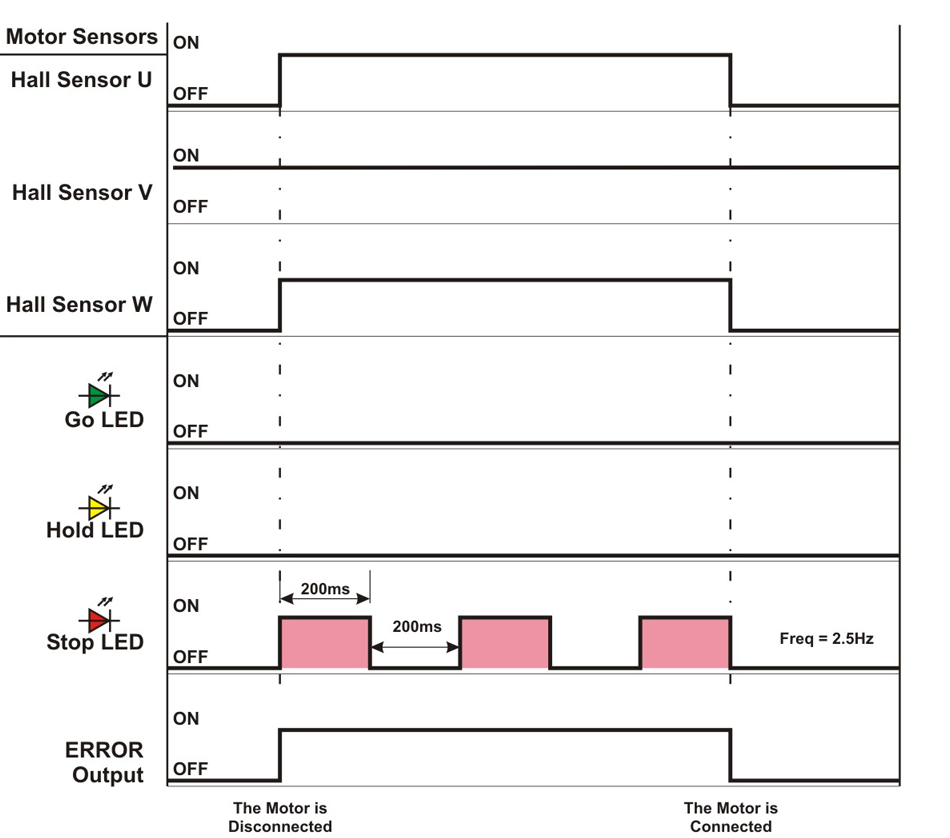 When the CPU sees that all Hall Effect signals are logically on, it means that the motor is not connected