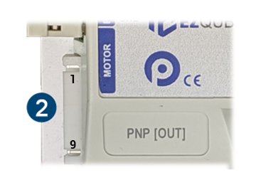 The EZ-Qube Module motor port is a 9 pin JST Style connector that accommodates Pulseroller Senergy motor rollers and PGD units.