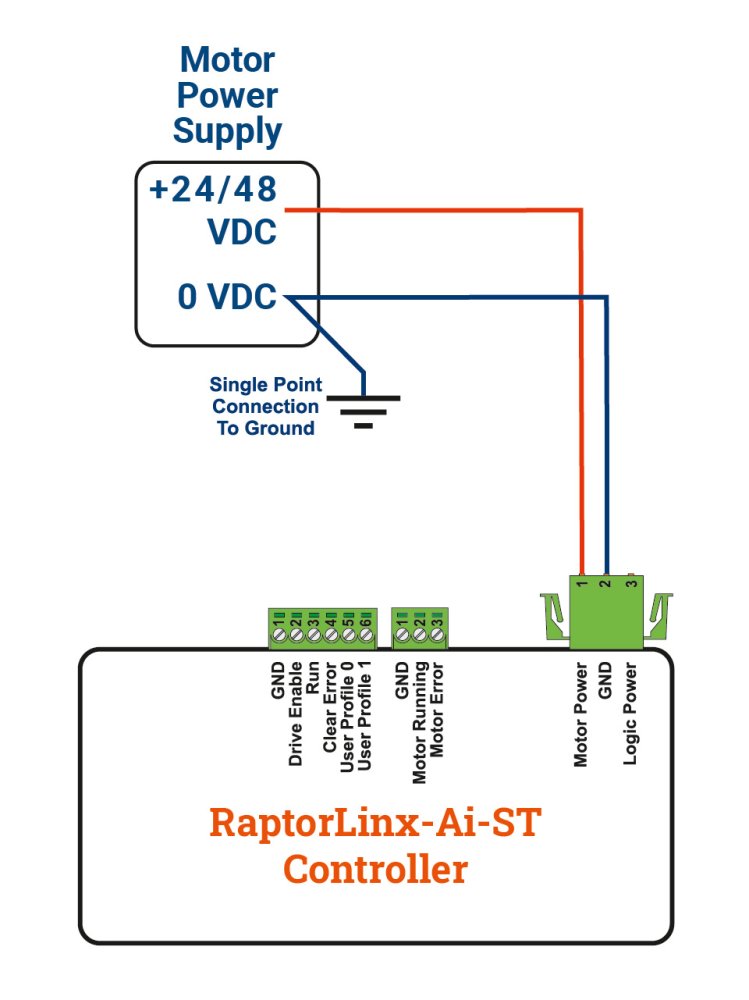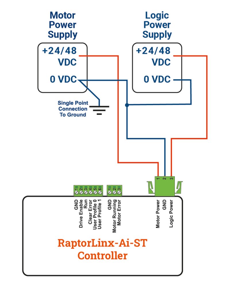Each RaptorLinx-Ai-ST is equipped with the ability to separate the Motor Power from the Logic Power.