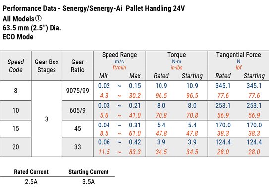*Please note that Speed and Tangential Force are proportional to roller diameter and that these data do not include any change in diameter due to added lagging or coating options.
