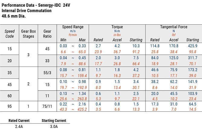 *Please note that Speed and Tangential Force are proportional to roller diameter and that these data do not include any change in diameter due to added lagging or coating options.