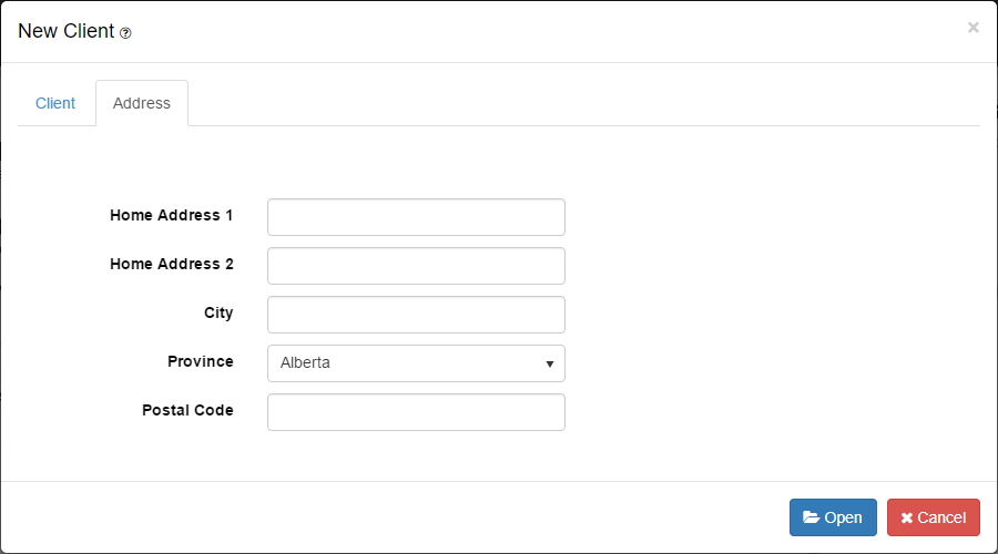 The Address tab allows you to enter your client’s address information and their province of residence for tax purposes. For more information on each data point, view the Address area of Data Entry.