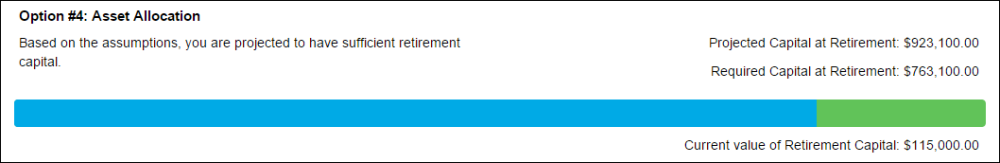 Option #4 is designed to compare a client’s Projected Capital at Retirement to their Required Capital at Retirement.
