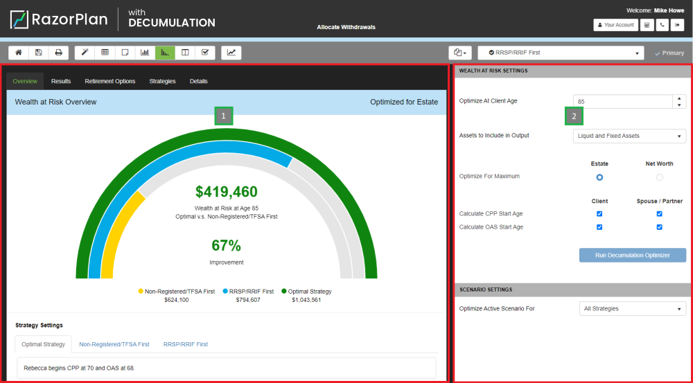 Clicking the Decumulation button displays the analysis and allows you to adjust the settings used to determine the optimal strategy.