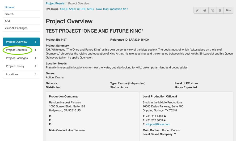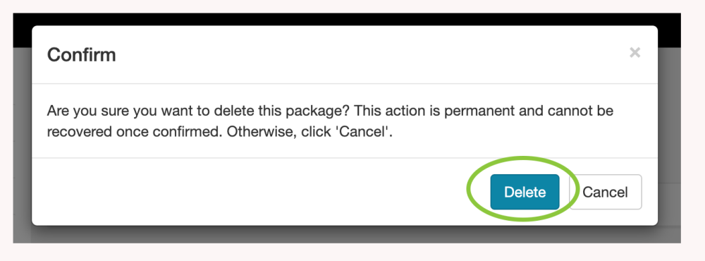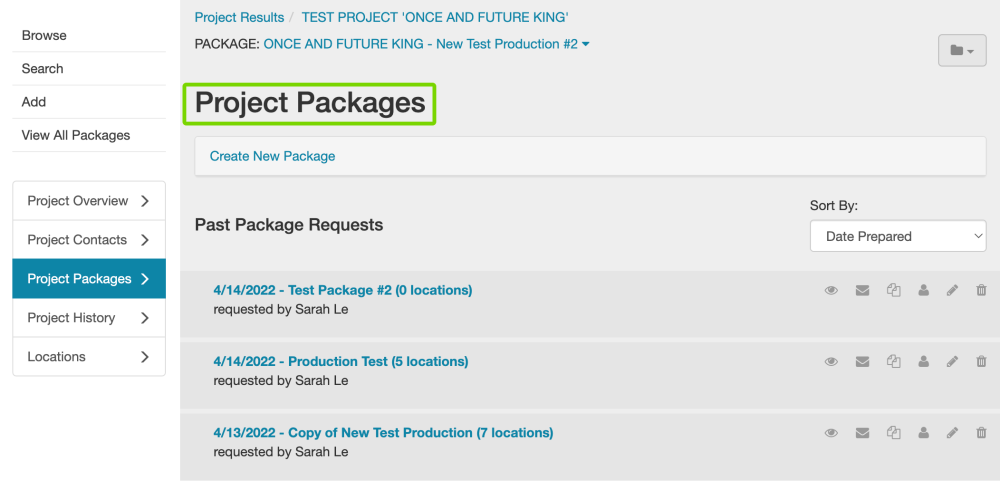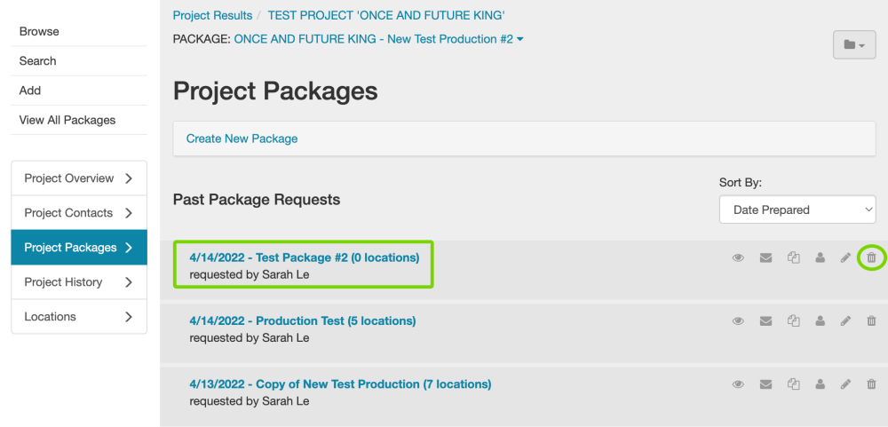 If required, individual packages can be deleted by studio staff anytime. To delete a package, begin by finding the project that the package is associated with. For more information, see Browsing Projects and Searching for a Specific Project.