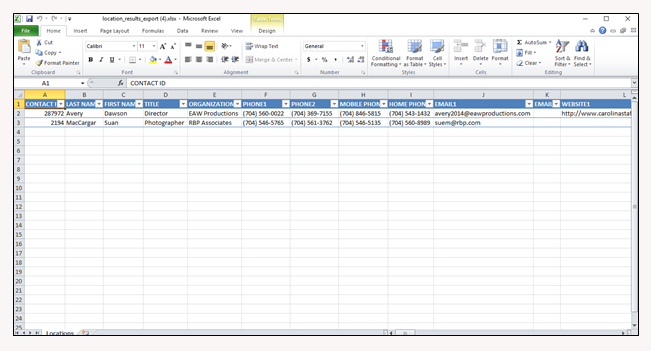 The download will begin automatically. Once it is complete, you can open the Excel spreadsheet. The columns are preformatted and self-explanatory. You may now click the Close button in the Contact Export dialog box.