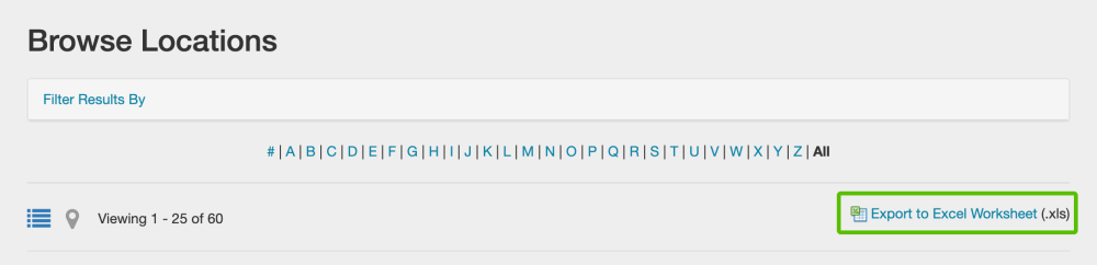 To export your search results into an Excel spreadsheet, click the Export to Excel Worksheet (.xls) on the right-hand side of your screen.