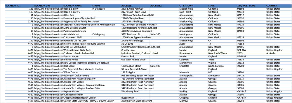 Location information can be exported from Reel-Scout™ RS Studio into an Excel spreadsheet for use in other applications. This capability allows for greater flexibility in producing reports and analyzing options with a client.