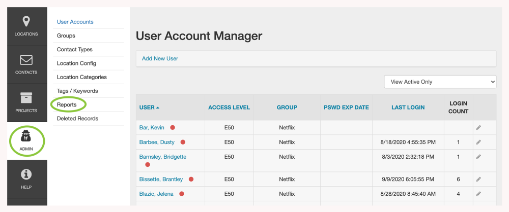 Click Reports in the Admin sub-menu.
