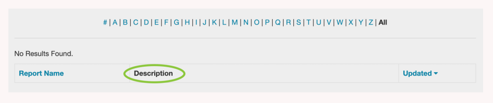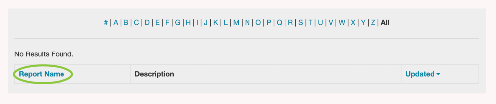 You can search for reports based on the letter that they begin with by clicking a letter in “alpha” selection line. Selecting the number sign # will display reports that begin with a numeral. Clicking All will display all of the reports that are available.