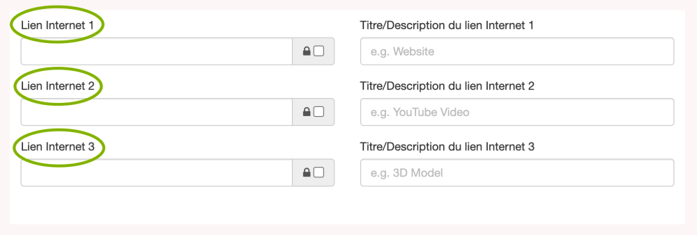 e. Les champs Liens Internet