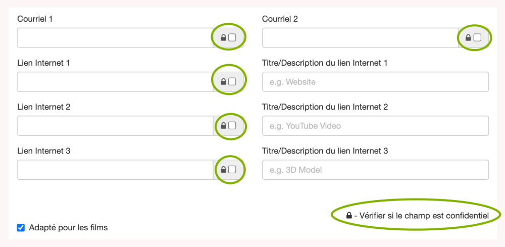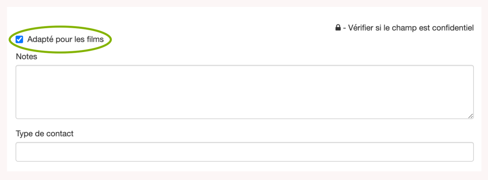 La case à cocher Adapté pour les films permet au personnel de marquer les contacts qui soutiennent activement l’industrie.