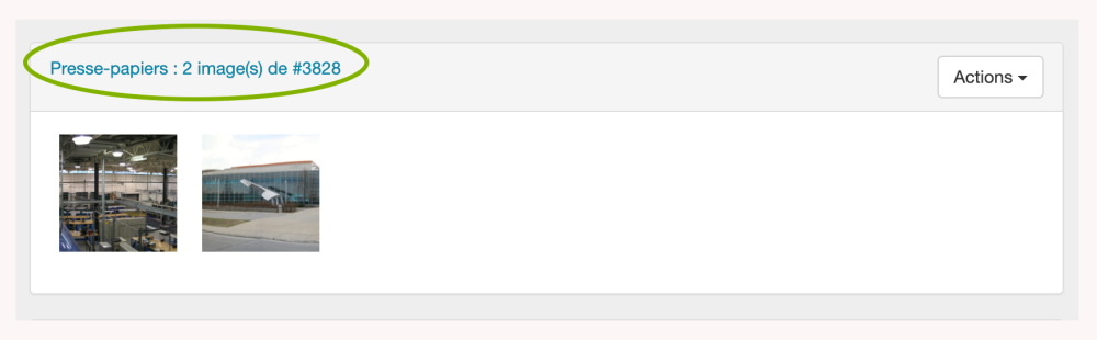 Des copies de vos images apparaîtront dans un volet Presse-papier au-dessus du champ Images sur la page Photos du lieu. Au-dessus des photos, le numéro du lieu à partir duquel elles ont été copiées est référencé. Il s’agit d’un lien cliquable.