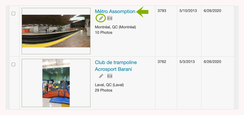 Après avoir trouvé le lieu que vous recherchez, cliquez sur le crayon Modifier à côté du nom.