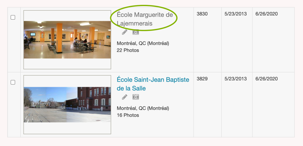 En cliquant sur l’icône Dupliquer, vous faites une copie du dossier complet de votre lieu. Notez que le Nom du lieu a maintenant le titre original entre guillemets simples avec devant les mots “copie de”.