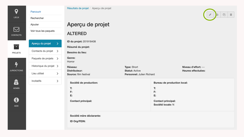 Modifier ou changer des informations sur un projet est très similaire à l’ajout d’un projet.