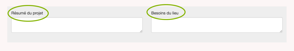 e. Les champs Résumé du projet et Besoins du lieu