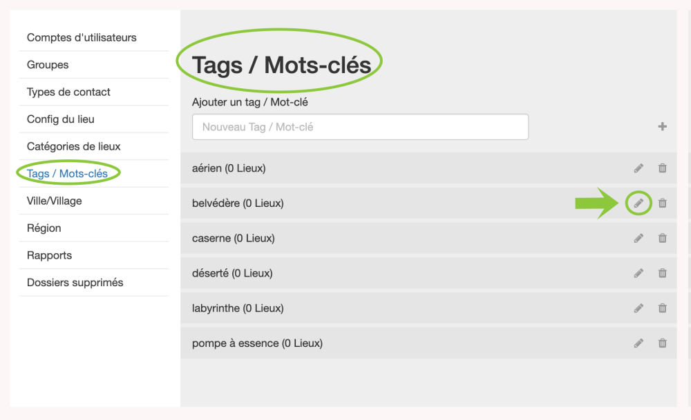 Les mots-clés peuvent être modifiés en cliquant sur l’icône Modifier (crayon) à droite du mot-clé que vous voulez changer.