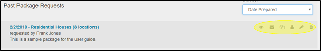 Il y a une barre d’outils associée à chaque paquet de lieu sur l’écran, un historique de la date d’envoi du paquet et de la personne à qui il a été délivré. Sur la barre d’outils, il y a six options :