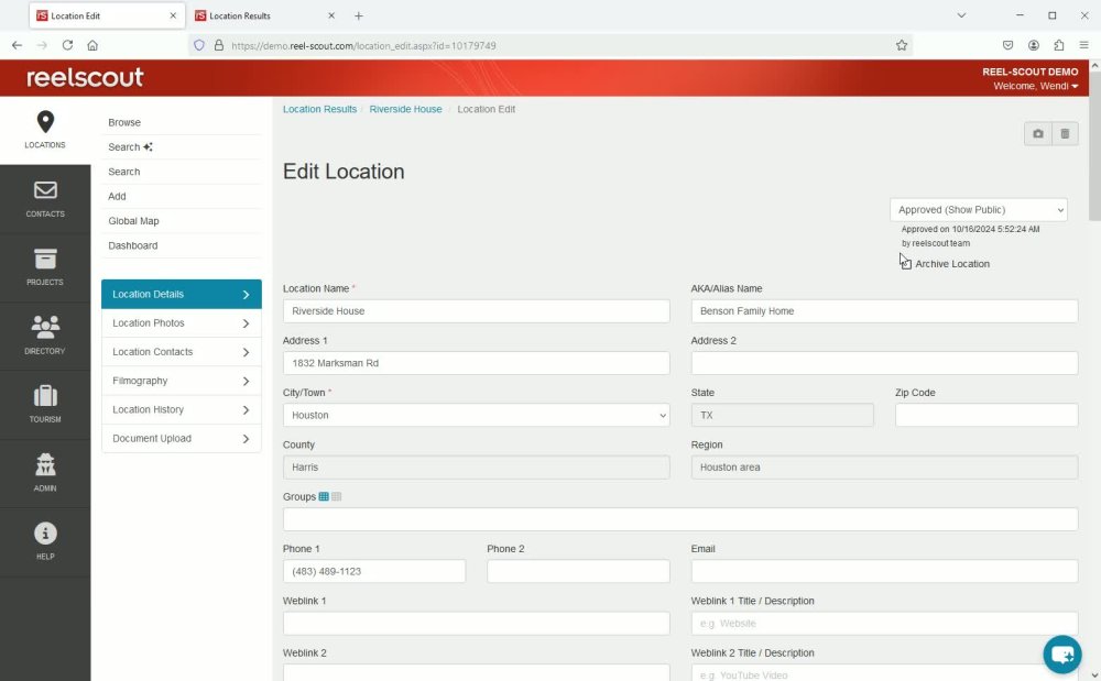- To archive a location, select the desired location (e.g., Riverside House).