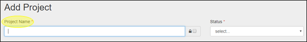 On the Add Project screen, you can enter all of the information for your project. Required fields are those that are marked with a red star (*).