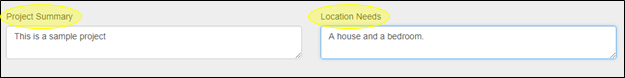 The Project Summary and Location Needs fields are free-form text fields that allow you to describe the project and the client’s needs. You are limited to 4000 characters in these fields.